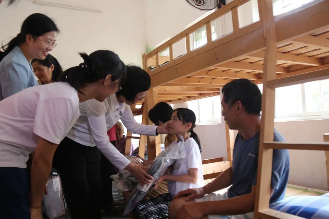 谭萍一行向受灾儿童赠送学习用品,关心她们的身心健康